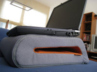 El cojín Belkin CushTop nos va a servir de base entre nuestras piernas y nuestras manos, formando así una superficie robusta (pero muy frágil de peso) dónde colocar y usar el portátil. De esta forma evitaremos el molesto calor sobre las piernas que desprende el portátil, además de darnos una base muy estable para poder apoyar tranquilamente las manos con firmeza sobre el ordenador sin que este se tambalee.